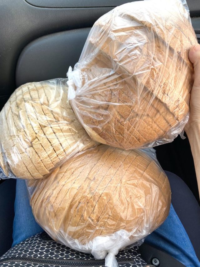 目玉焼きも高級品。老舗のパン屋で手作りパンをまとめ買い。冷凍保存。しばらく見ないうちにサーモンがめちゃ高くなっていて