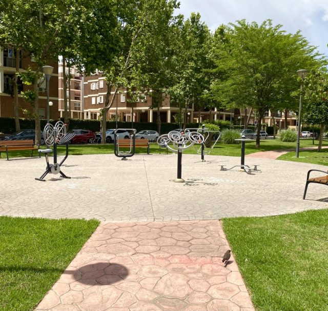 鳥たちがあちこちに。ベンチも木陰も、ジム器具もある。そして、人はいない(笑)。最近わかってきたのだけど、私が住んでいたエル・パロ地区って