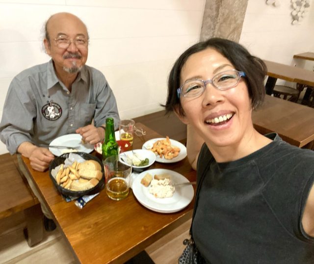 まずはビールで乾杯。タパスなどつまみながら、おしゃべりに花を咲かせる。と、書けば1行だけど、実はこの後、話が止まらなくなり