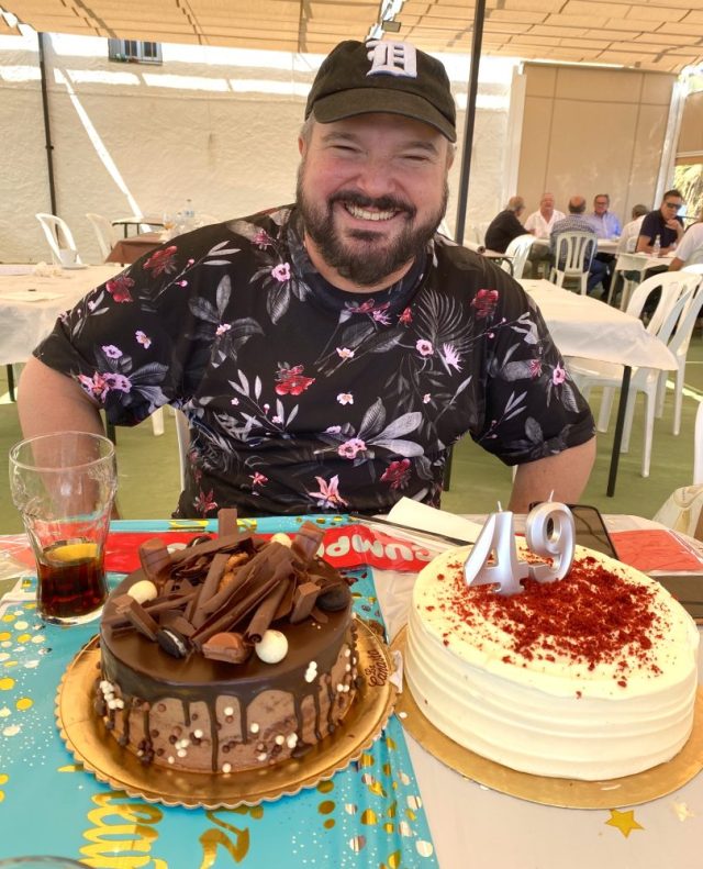 ほんとかいな(笑)。甘党でない私は、ビールとつまみを片手に。こんなに大きな丸いケーキは久しぶり。みんなでわいわい食べるからおいしいんだよね。