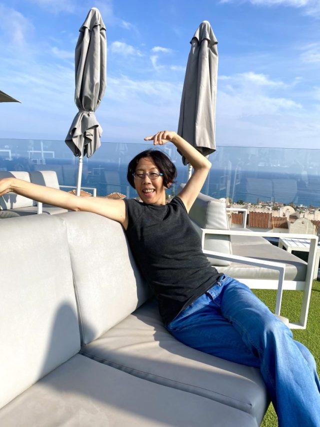 マラガっ子は幸せだ。心ゆくまでリラックス&リセット。ひなたでも日陰でも、お好み次第。広いので自由に歩き回れる〜。