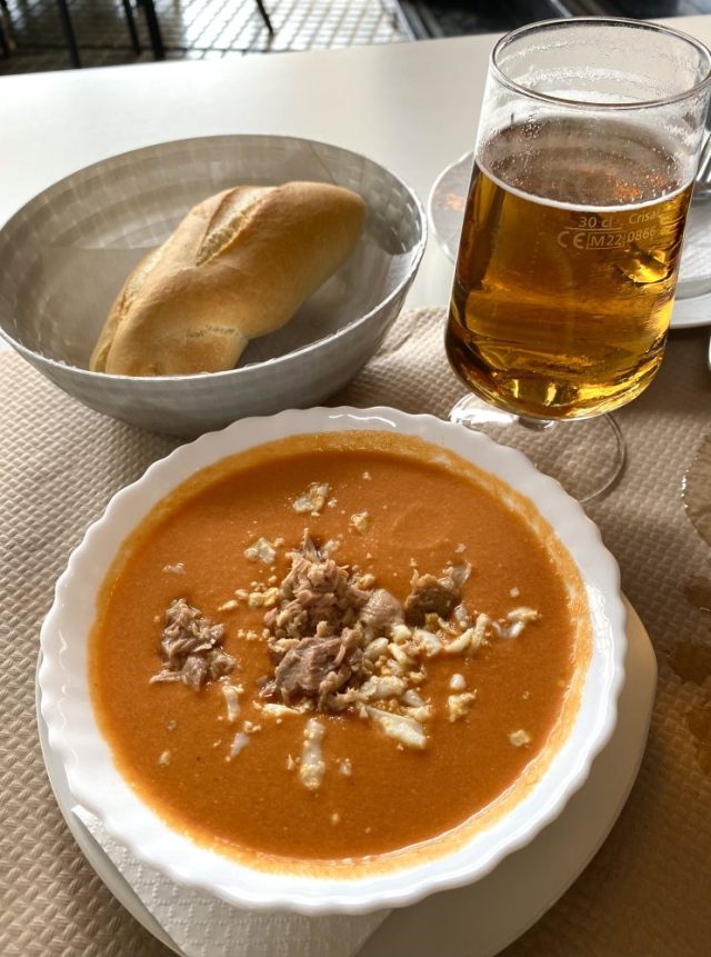 のだ〜。このオレンジ色の冷えたどろどろ(笑)が、見た目からは想像できないほどおいしい。アンダルシアでは、夏といえばガスパチョかポーラ。暑くて食欲がない日でも、これはするするいける。