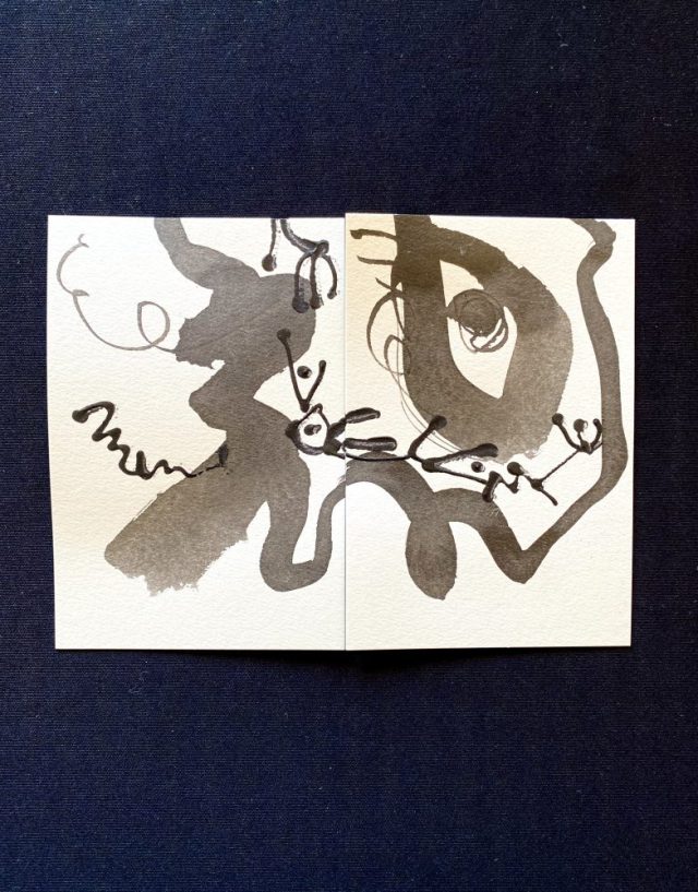 私が歩いている道は、どこに続いているんだろう。行き先は、まるでわからない。けれど「明日へ続いている」ことは確かだ。「道」文字の下半分(昨日の続き、明日へ続く)