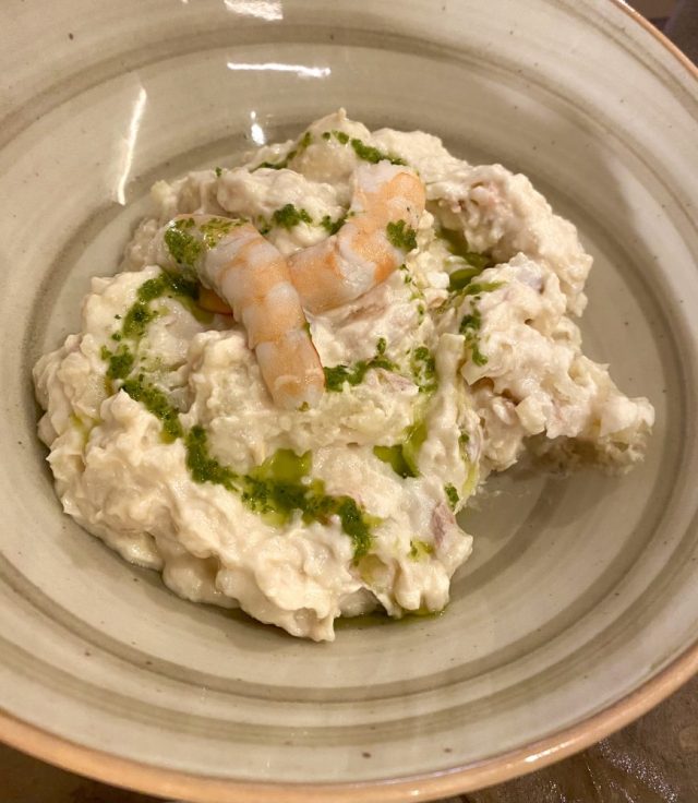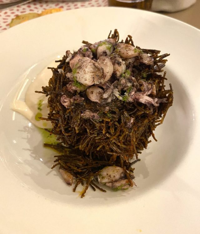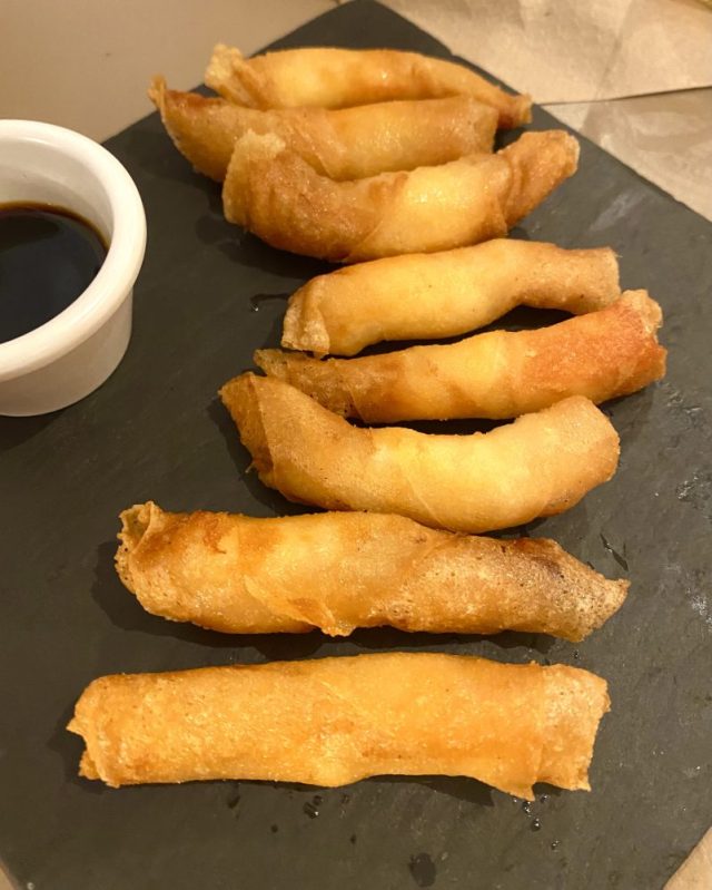 あっという間に3杯目。1時間半踊ってるし〜(笑)水分補給。エビの春巻き風、イカ墨の細麺、ポテトサラダ、白魚とポテト。そして、一番人気の牛肉の団子&ポテト。これがメインなのに