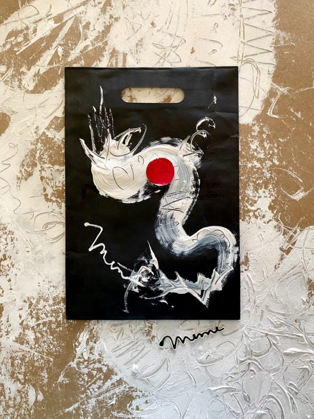 「己」文字の中に「AMISTAD (友情)」文字が隠れている。自分も友達も同じように大切。変わらぬアミスター(友情)に感謝。