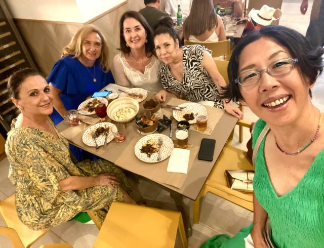 久しぶりの近況報告に花が咲く。夏休みの計画、家族や仕事、健康のこと。それぞれ問題はあるけれど、食べて飲んで笑って、エネルギーチャージ。