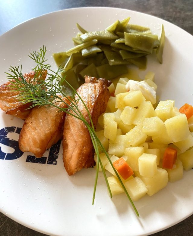 家へ戻り、早めの夕食。サーモンと茹で野菜。またしても15分クッキング。これにビール、チーズとパン。デザートはメロン。