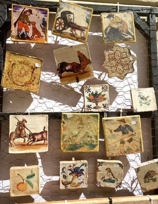 タイル細工も、もちろんアラビア文化の影響(写真)。壁に飾ったり、ペーパーウエイトにしたり。素朴で、味があってとてもすてき。私もタイルアート、やってみたいんだよな〜。
