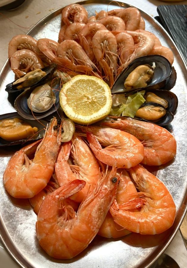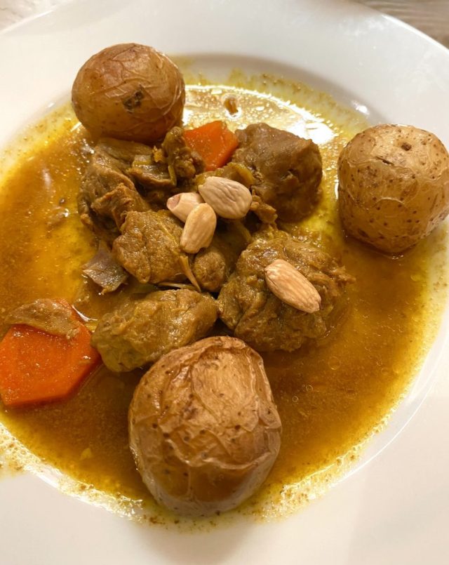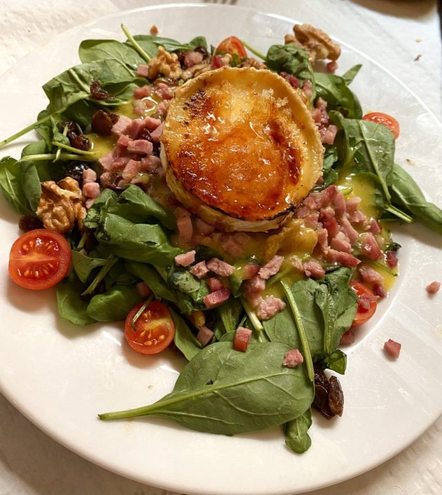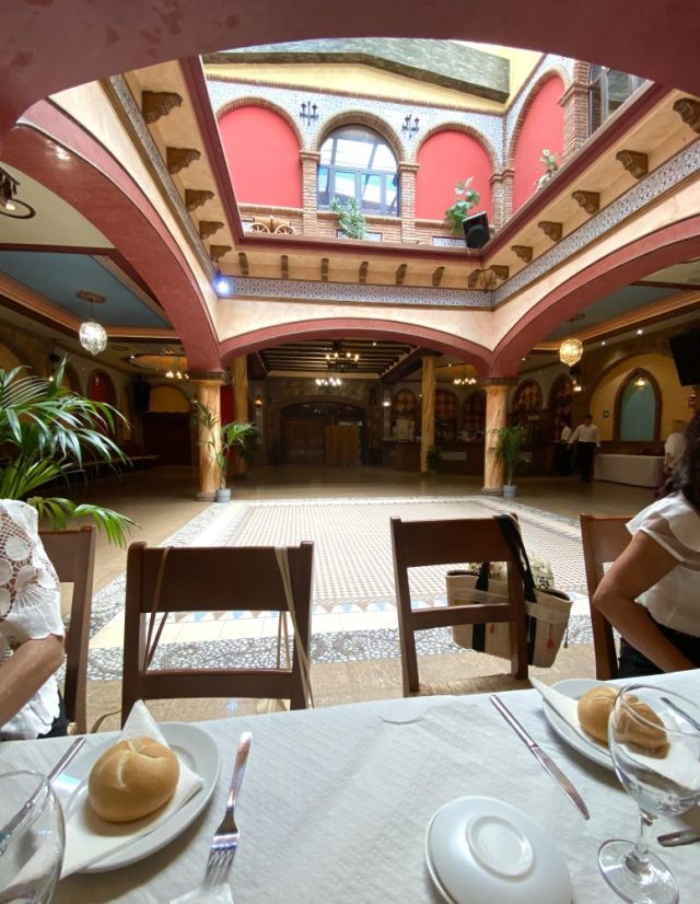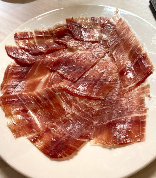 おお〜。ヤギのチーズ・ほうれん草・ベーコンのサラダ、そして頬肉の煮込み。どれもめちゃうま〜。スペインの人たちは本当によく食べる。胃腸が元気でうらやましい(私も完食したけれど夕食抜き)。