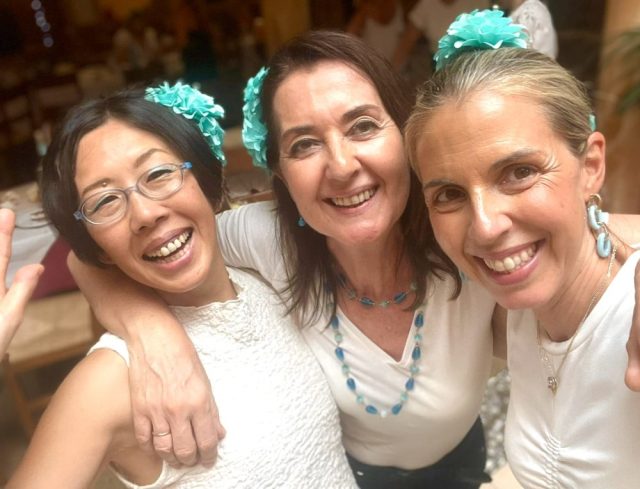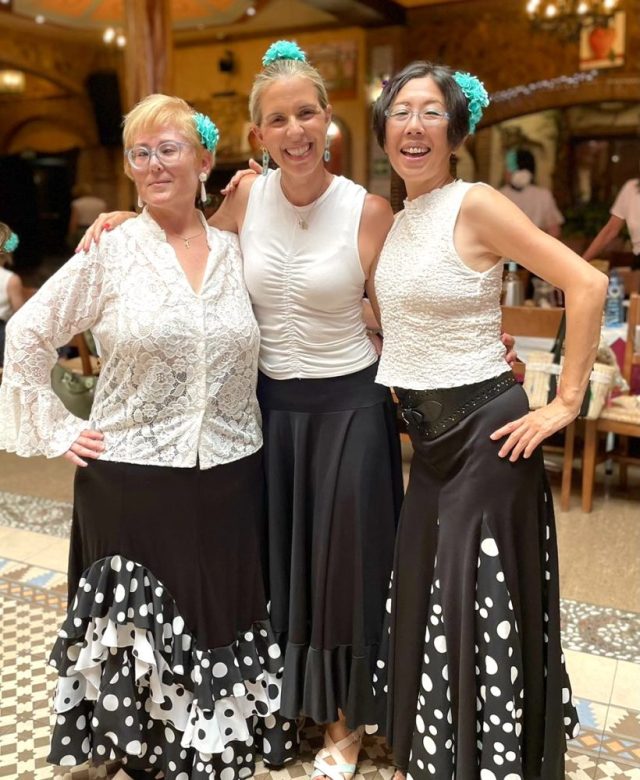 ランチの後は発表会。今期習ったファンダンゴ、扇子を持って踊るセビジャーナス、4人で踊るセビジャーナス、ルンバ、マラゲーニャ、さらにカスタネット演奏まで。盛りだくさん。