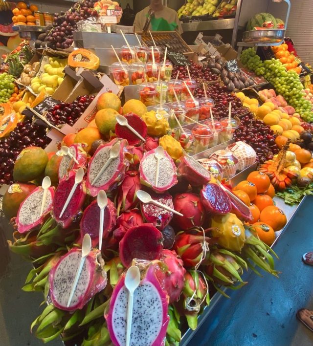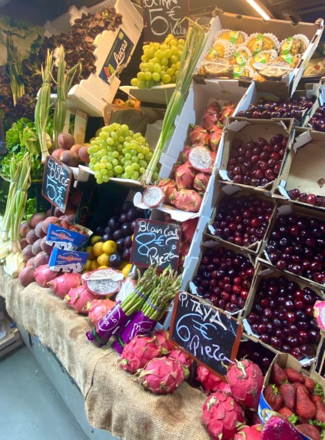 通り道、抜け道として利用(笑)。色とりどりの野菜や果物がどかんと積まれ、活気あふれるアタラサナス市場。マラガにお越しの際はぜひどうぞ。