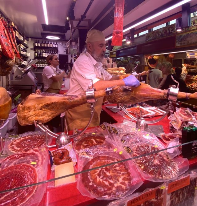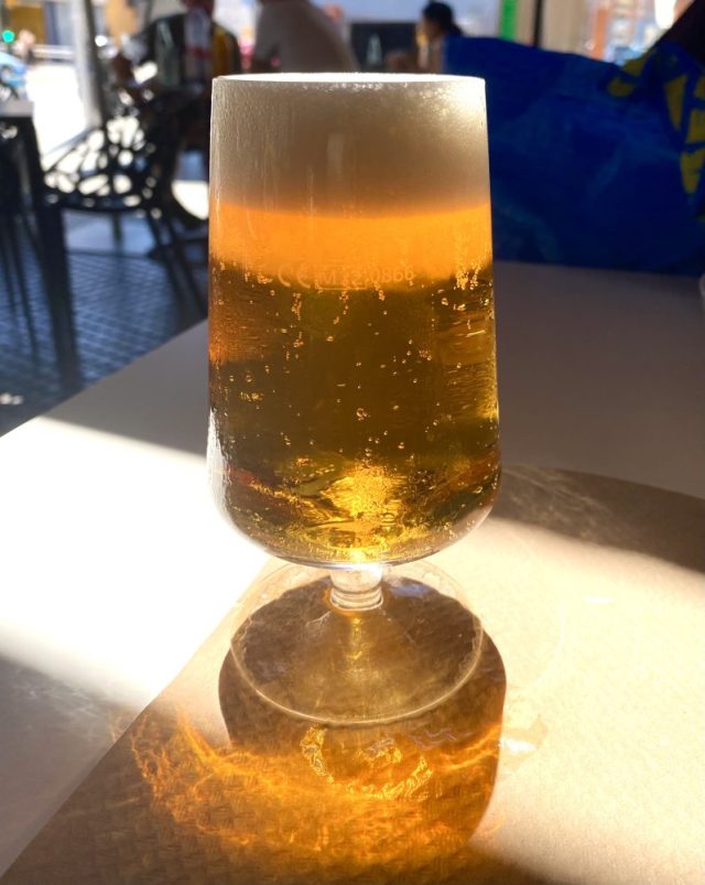 帰りは、アタラサナス中央市場を通って。オリーブの実やら生ハムやら、おつまみになりそうなものがいっぱい。ひと休みにビールを1杯。黄金色に輝いてる〜(笑)。来週からまたマラガは