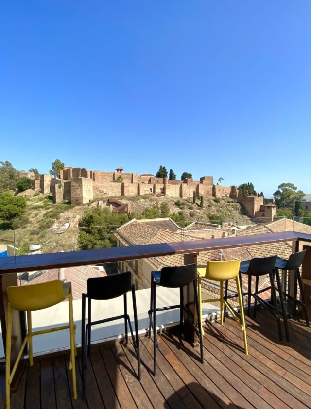 セントロのど真ん中。「アルカサバ(要塞&宮殿跡)」がどーんと目の前に。なんちゅう眺め。贅沢感。マラガの旧市街を眺めながら