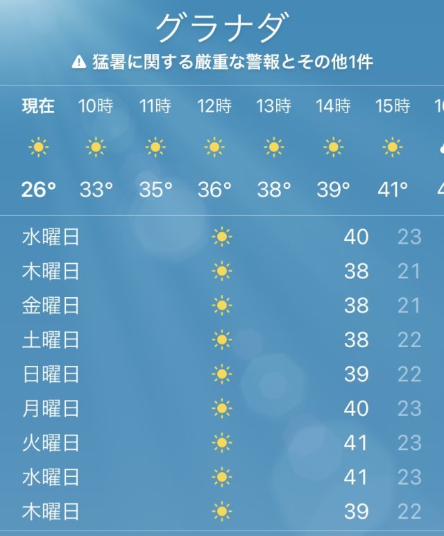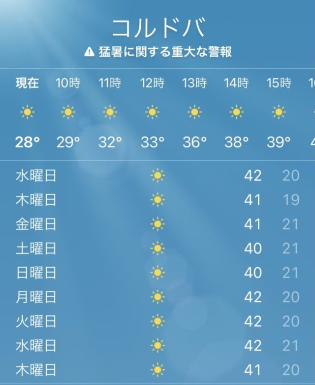 今年最高、大丈夫なのか〜。せっかくなので、お隣のグラナダ県とコルドバ県の天気予報も貼っときます。友人があまりの暑さに耐えきれず「クーラーの取り付け」を依頼したら