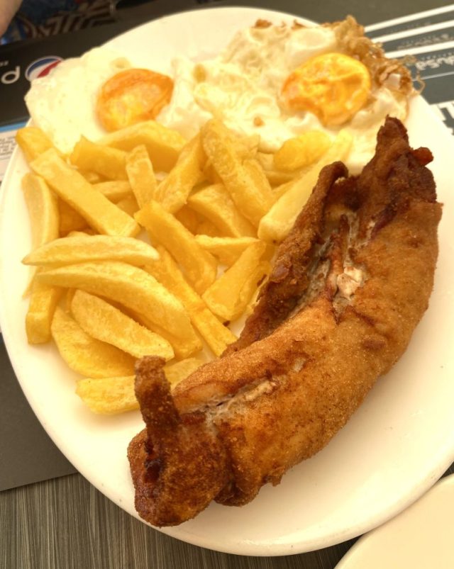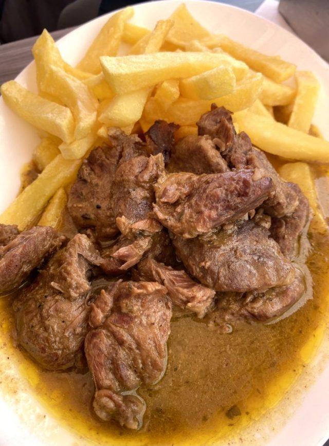 突撃(笑)。フラメンキンや頬肉の煮込みをがっつり食べる。踊った後だから、お腹ぺこぺこ。目玉焼き、フライドポテトもついてものすごいボリューム。