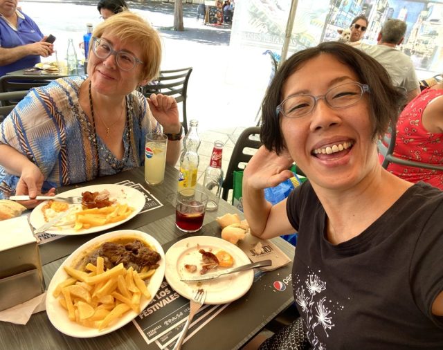 アドレナリンがどくどくと(笑)。とはいえ、手続き関連で、今月はマドリードやバルセロナに行く予定。どうなることやら。さて。ダンス教室の後は、一緒に帰る仲間のピリとランチ。