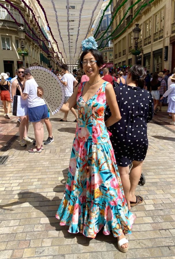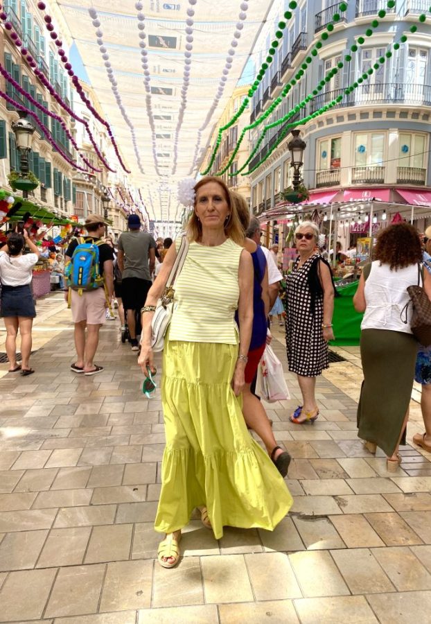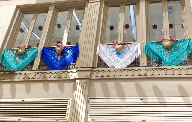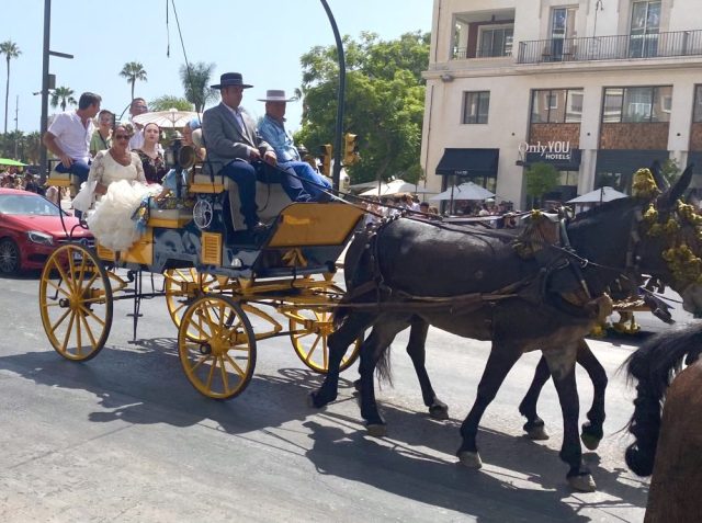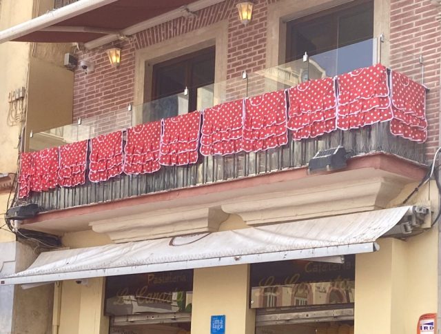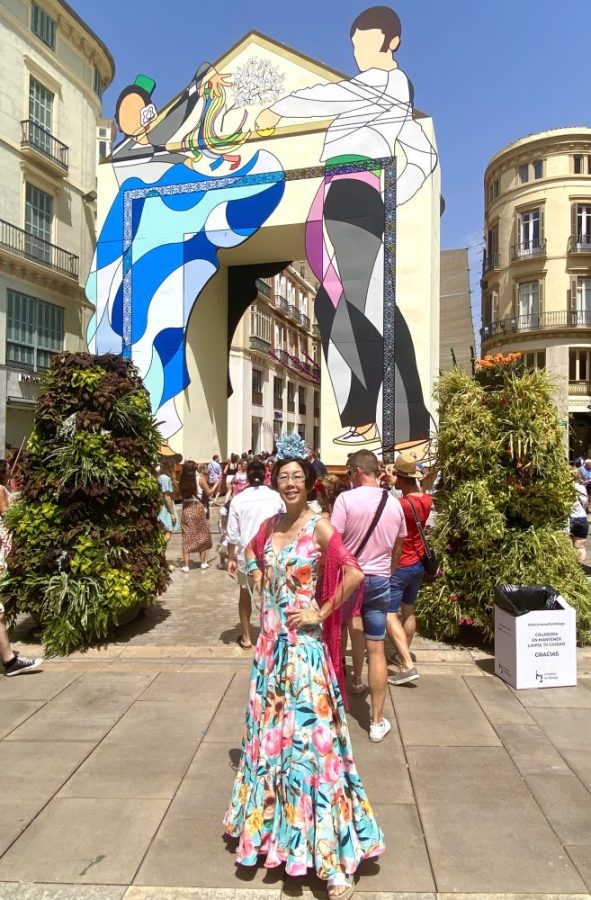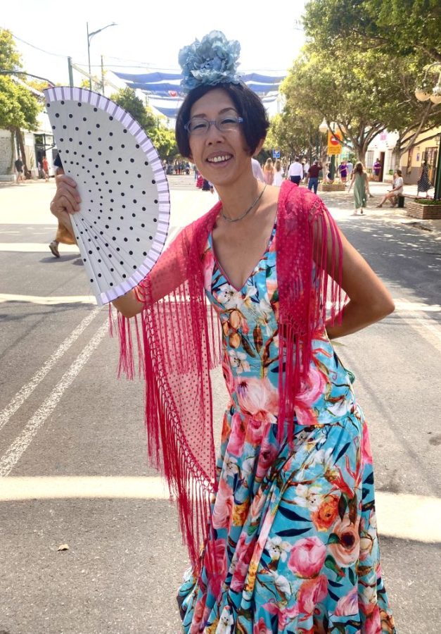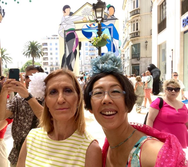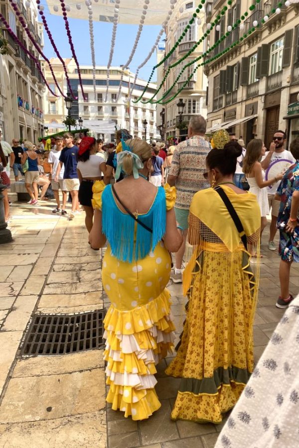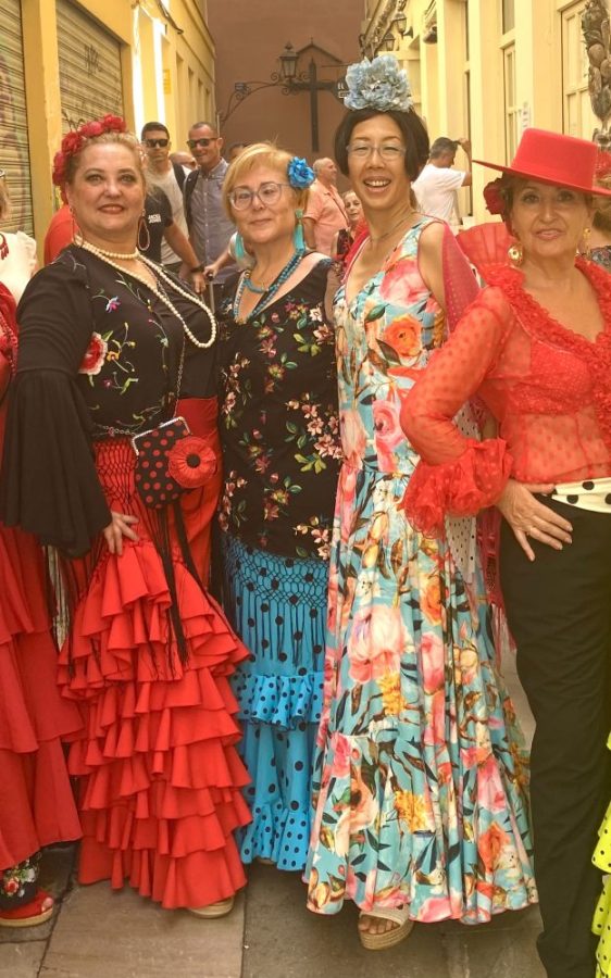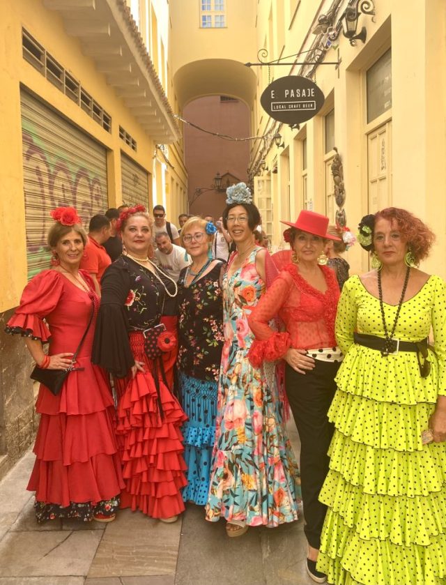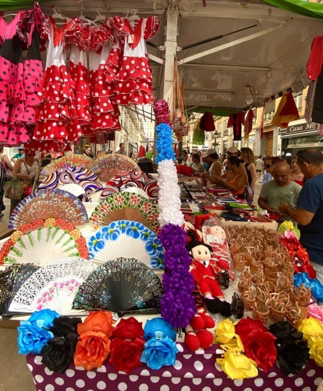 マラガの民族音楽&舞踊であるベルディアーレスがお目当て。カルメンがさっそく髪につける花を購入。これぞ、フェリアのドレスコード。オーレ!