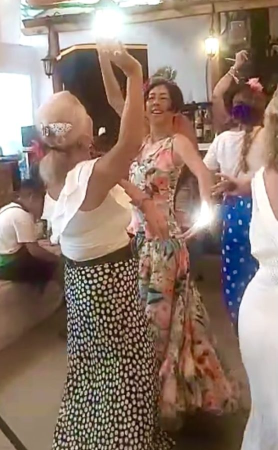 ライブを楽しみながら歩いていると、ダンス教室の先生&仲間に遭遇。さっそく写真撮影。みんなフラメンコの衣装が決まってる〜。グアパス!