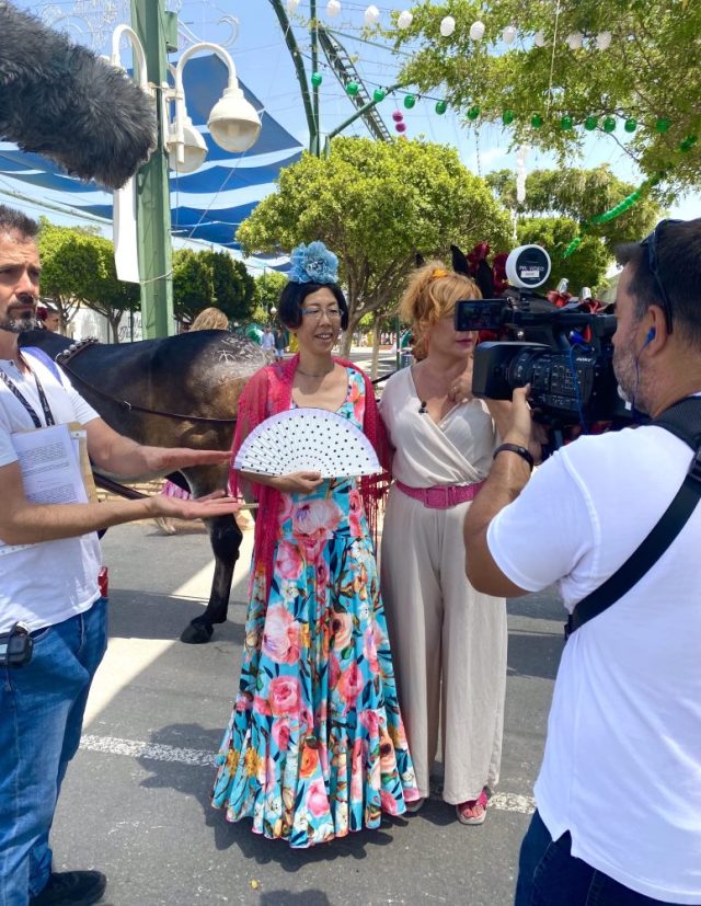 って、カメラの前で踊る〜(笑)。フェリア最初のセビジャーナスがカメラの前って。すごいな。明日は、なでしこチームで参戦。はたして。