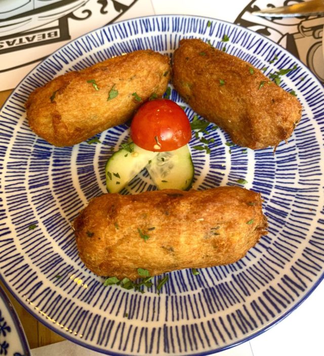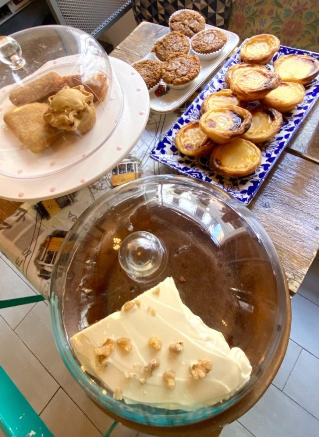 タラ、豚肉、サラダなど大皿で頼んだのだけど、1部しか写真なし。おしゃべりに夢中で〜。どこか日本的な味わいもするポルトガル料理に、なでしこ3人大満足。ポルトガル菓子&カフェでシメた後は