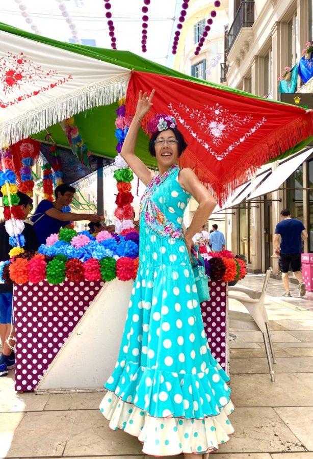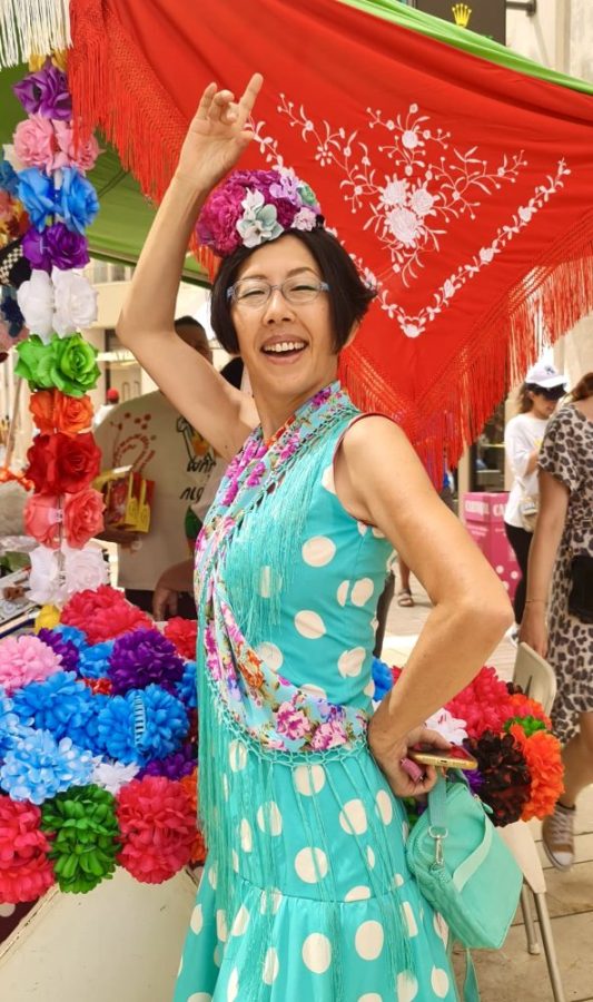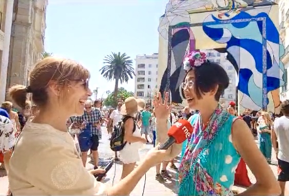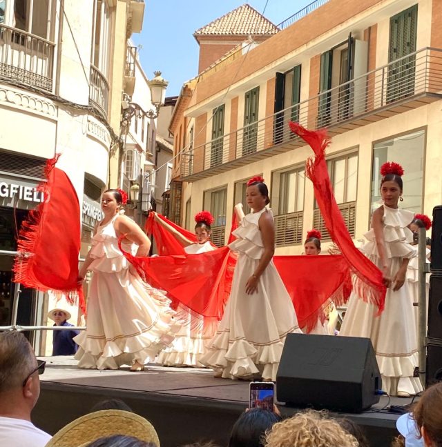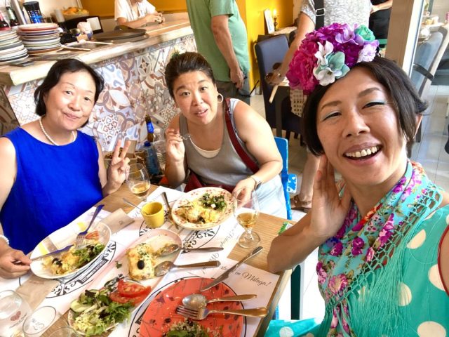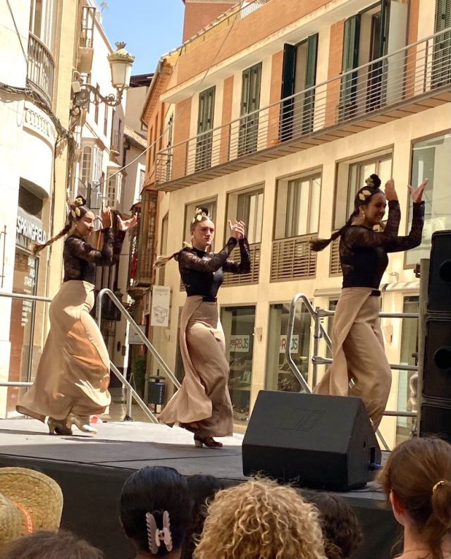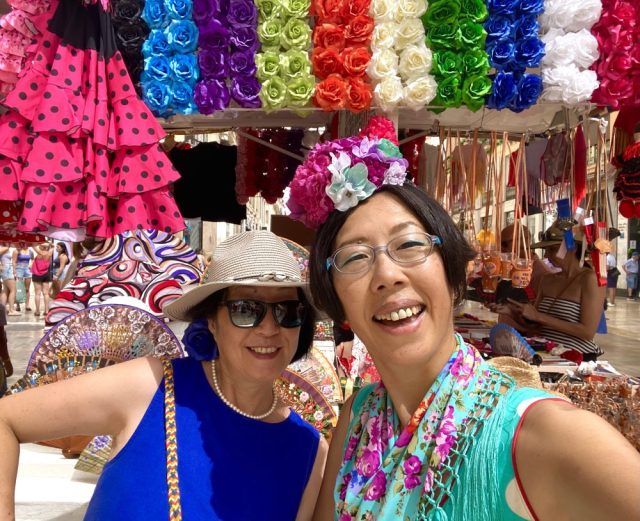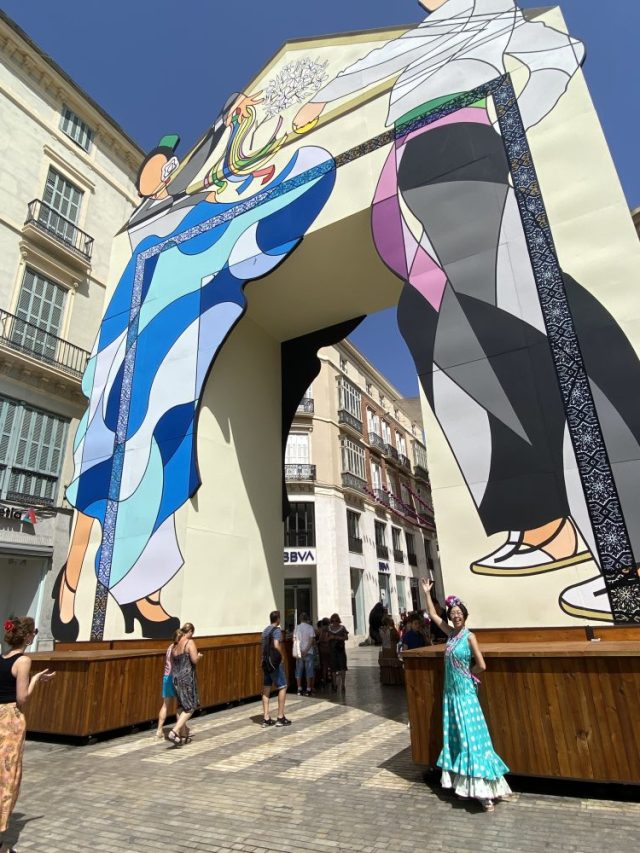 これもスマホがあるからこそ。まずは、千恵さんとスタート。ラリオス通りの入口のアーチで待ち合わせ。ベルディアーレスやフラメンコ、ダンスライブなどを見ながらそぞろ歩く。