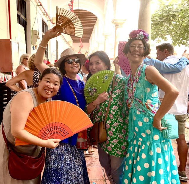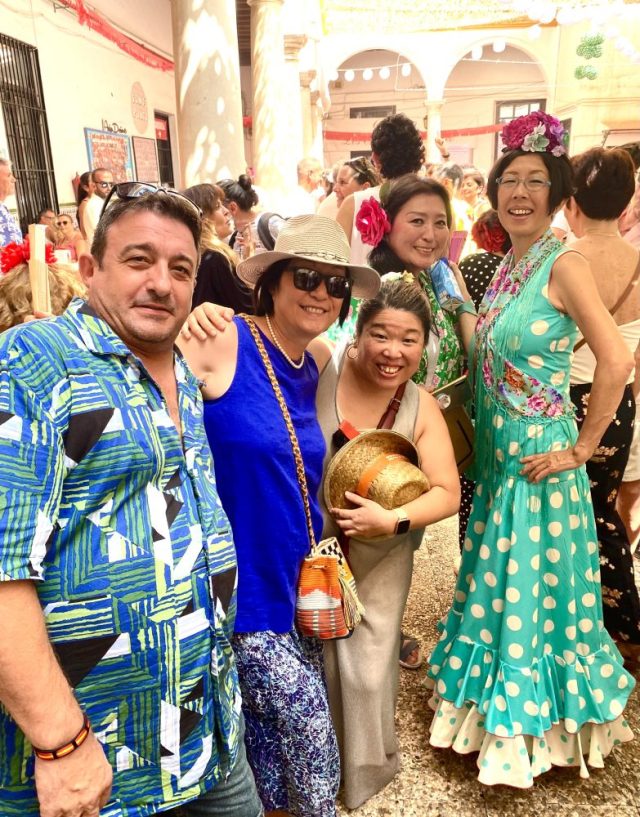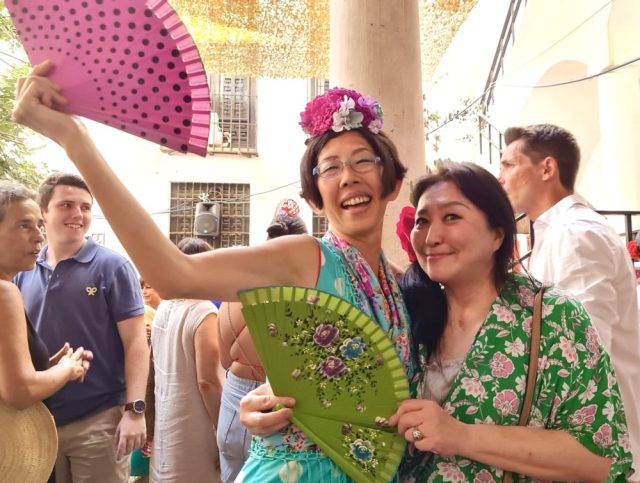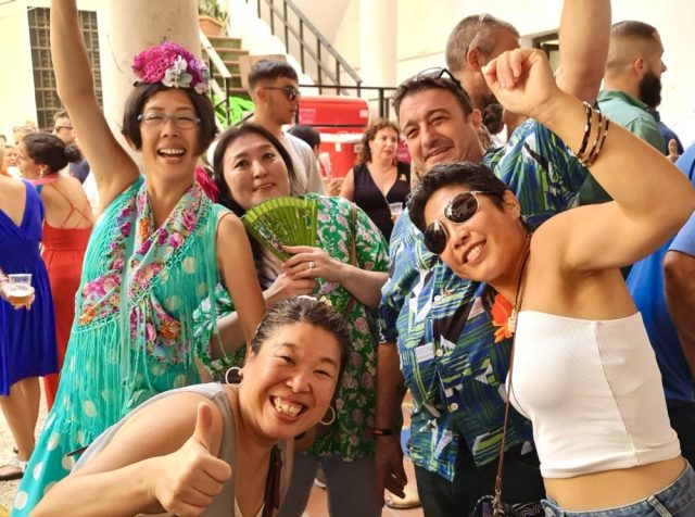 振り付けに合わせて、みんなで踊る〜(動画はFacebookでご覧いただけます。お時間のある方はぜひどうぞ)。こんな中庭がダンス会場だなんて、さすがスペイン。