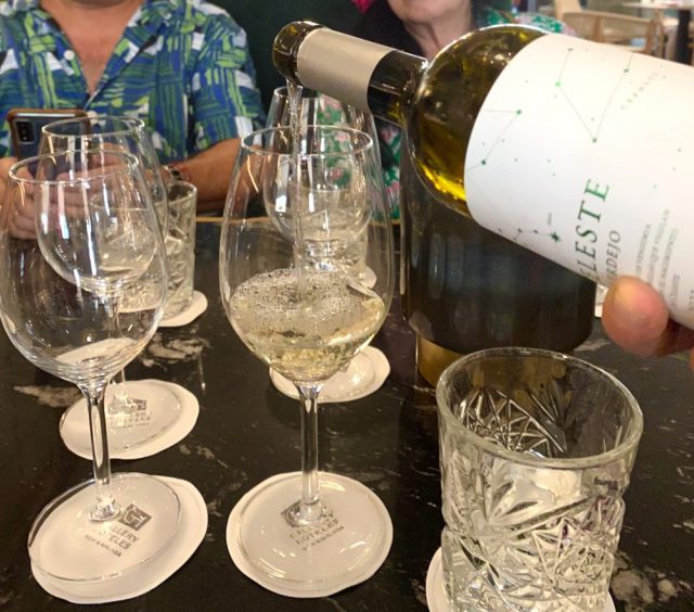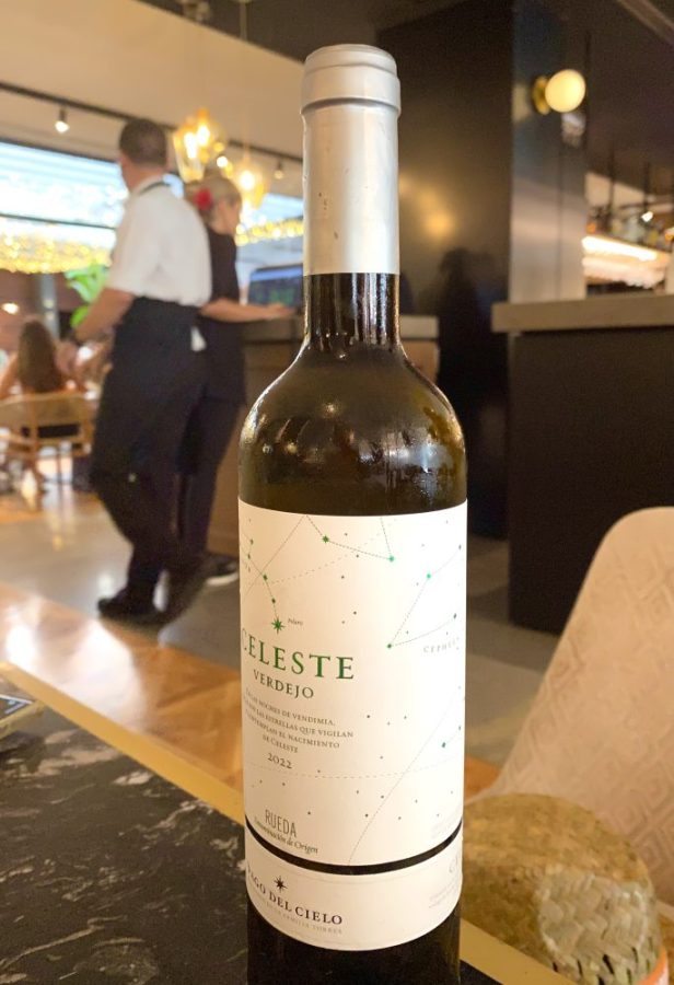 貴重な場所。冷房もあって、ふかふかソファイスでゆったりリラックス。せっかくなので、白ワインをボトルで注文。