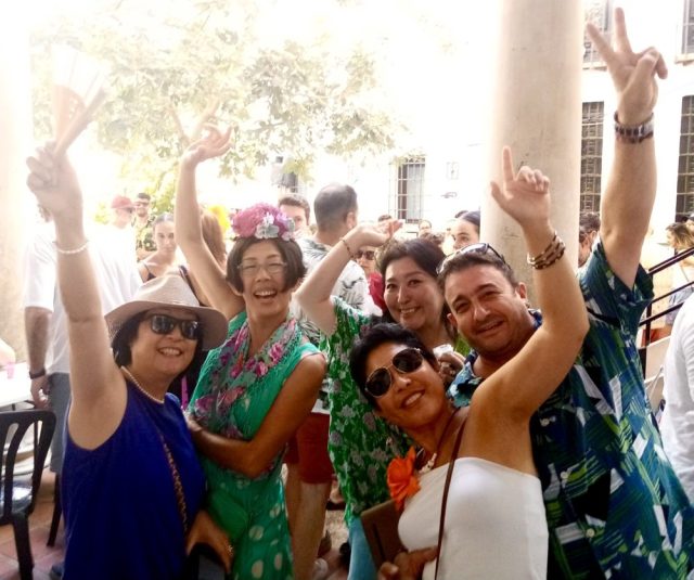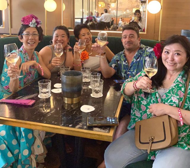 ここで、砂苗さん、ようこさん&旦那様のホセさんと合流。まずはビールで乾杯。会話もそっちのけで、ビールや扇子を片手に踊り出す。