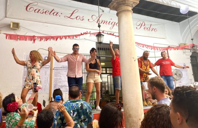 わらわらと、お店の人たちがカウンターのバーに立つ。そう、さっきまでドリンクが行き来していたカウンターがお立ち台に。「そんな事して衛生上」とか言う人はいない(笑)。これぞマラガ。人生を楽しむのに全力投球。
