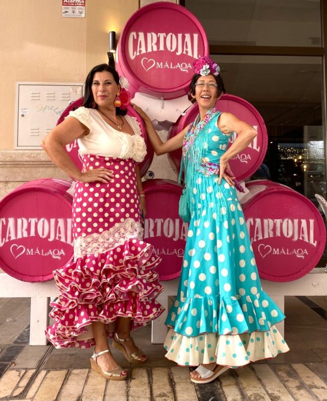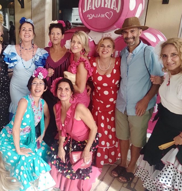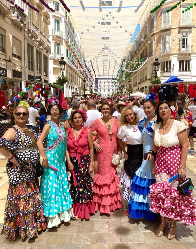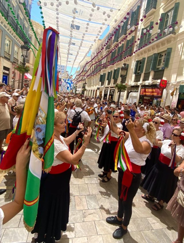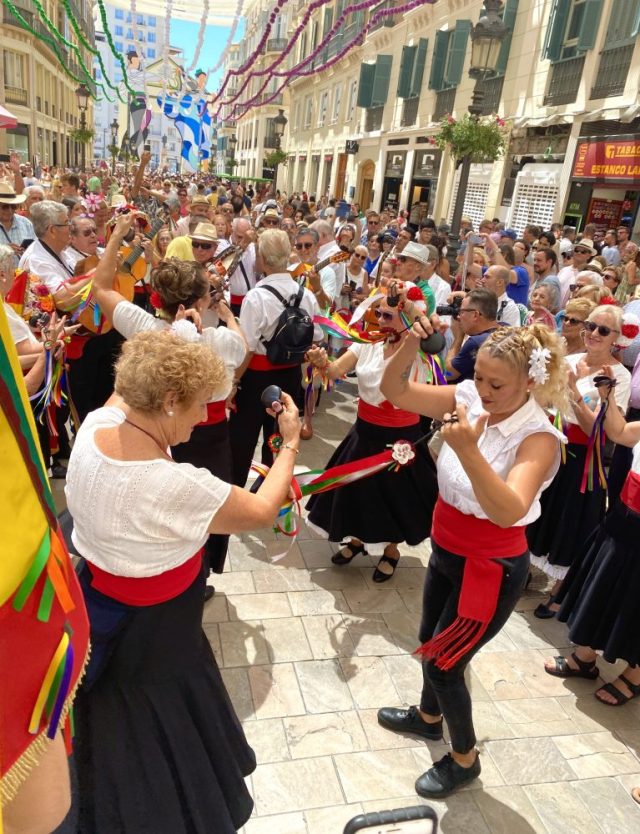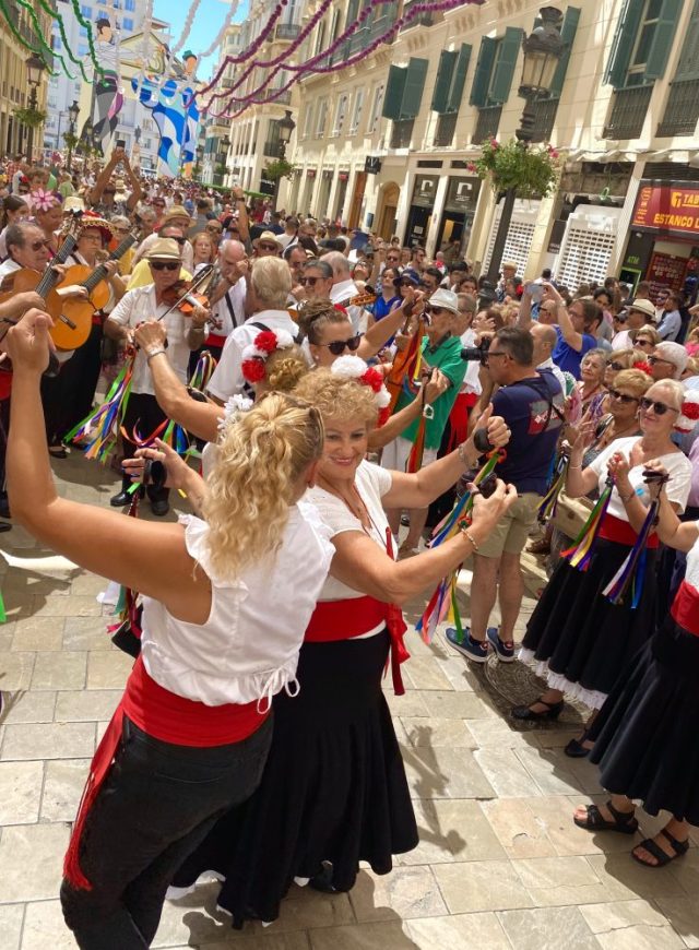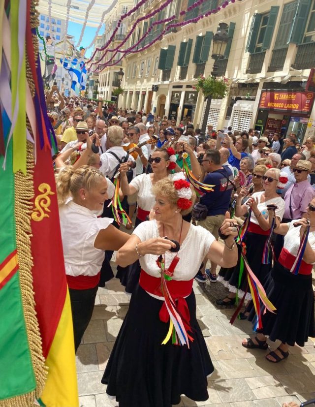 あっという間に人垣ができる。マラガの民族音楽&舞踊であるベルディアーレス。白・黒・赤の衣装に、手には色とりどりのリボンとカスタネット。私も少し習っていたけれど、踊るスピードがとにかく早い。