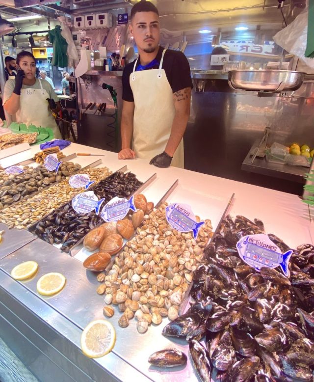 【一日一作プロジェクト】貝アート「よろかな(喜悲)」を作った。スペインの魚売り場は、非常にシンプル。