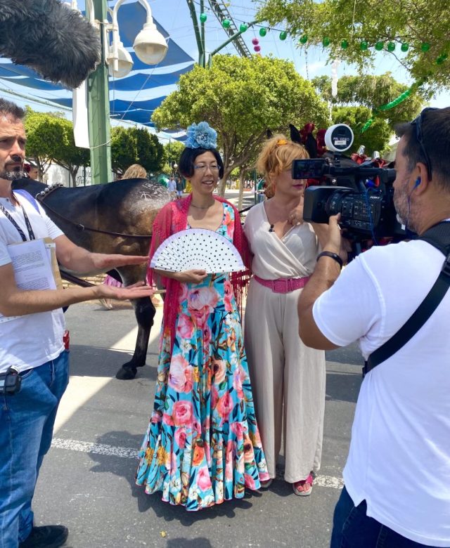 笑。フェリア初日に、テレビの取材を受けた話は書いた通り。「カナル・スール」というテレビ局の取材で、フラメンコドレスを着てフェリア会場へ乗り込む私に