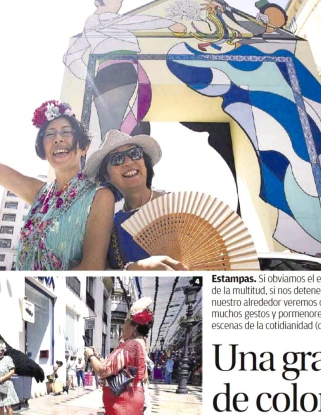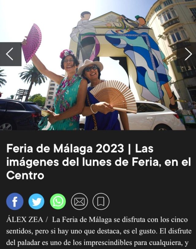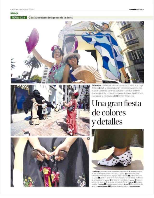 とメッセージが。うそ。送ってもらったそのページがこちら(写真3枚目)。「La Opinión」という新聞のフェリアレポートのコーナーに、なんと私たちの写真が大きく載っているではないか!