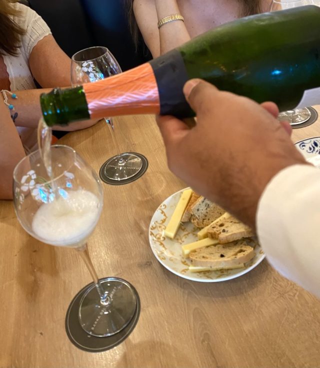 すごいな、このメンバー(笑)。めちゃ豪遊のようだけど、シャンパンボトル1本、チーズやオリーブの実、氷ザクザクスタンドまでついて20ユーロ。5人で割るから1人4ユーロ(600円)って、よくない?