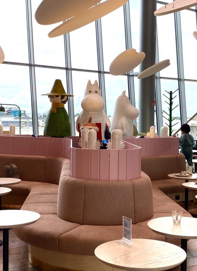 少なっ。人があまりにいないので、最初どこで手続きわからなかったぜ〜。ムーミンやクリスマスデコレーションの横を通り、飛行機を降りてから
