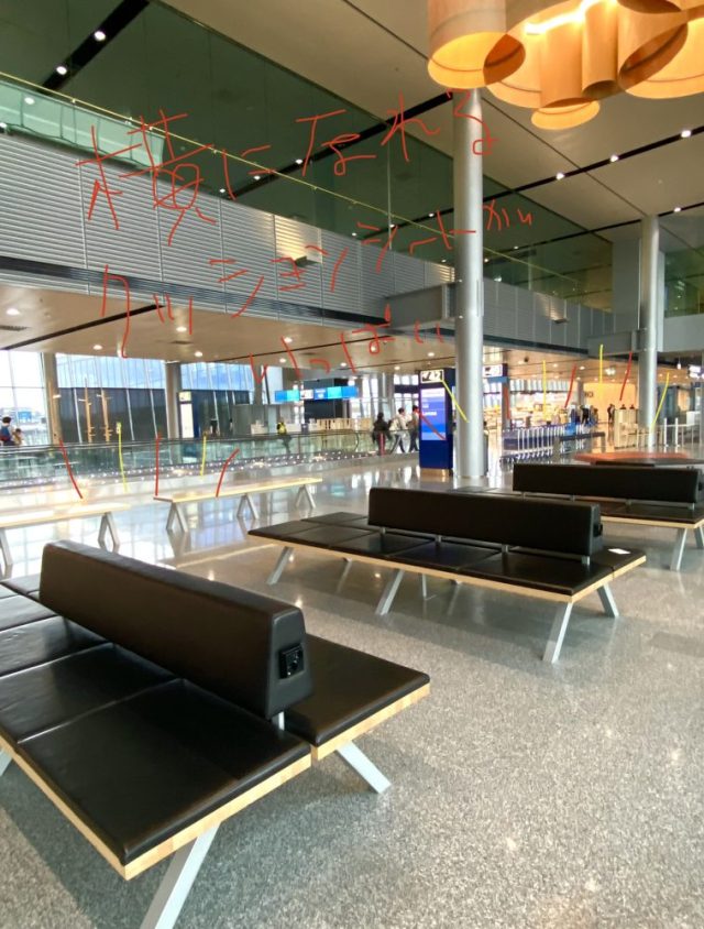 快適や〜。さて。飛行機を降りた瞬間「ひやっ」とした空気が流れ込んでくる。外気は11度。もう真冬やんか〜。空港内は人が少なく、閑散としている。イスは座り放題。気持ちのいいソファイスに寝放題。