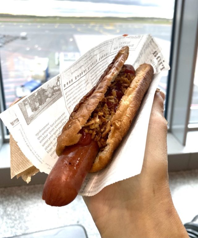 食べられんわ〜。高すぎやろー。よろよろと売店へ。熱々のフランクフルトとビールを購入。外が眺められるリクライニングシートを陣取り、ゆったりおやつタイム。
