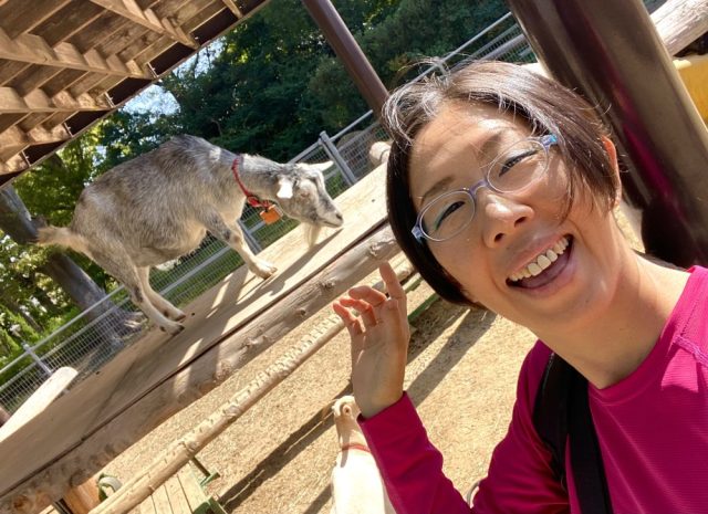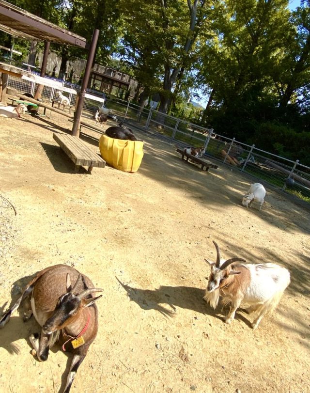 「ヤギとうさぎに触れるコーナーだって!」「入ってみるかー」