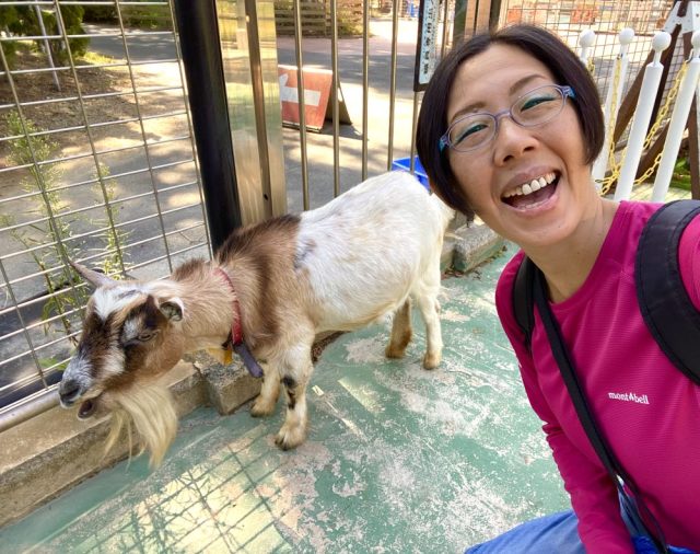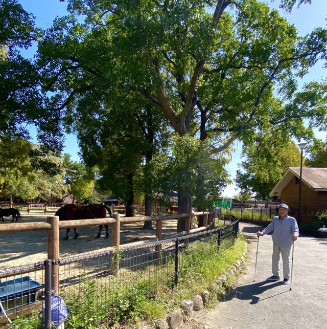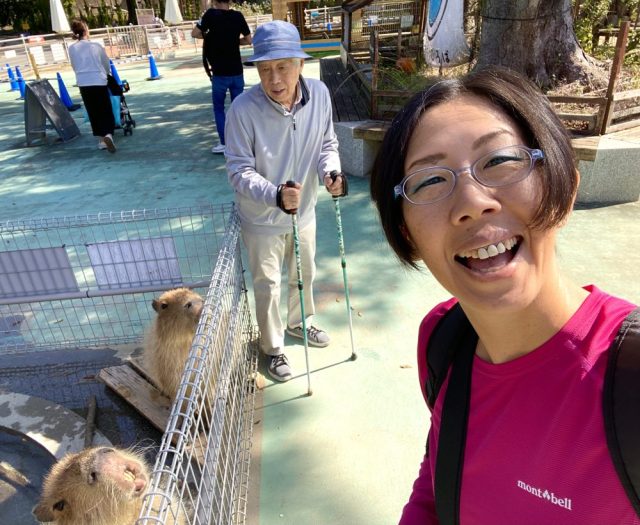 と言い出すではないか〜。大丈夫なん⁉︎ 私の心配をよそに「ベンチがそこらじゅうにあるから大丈夫」と、ポールを手に動物ゾーンへ突入。