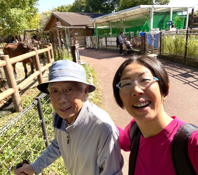 キリンコーナーまでは歩きたいと、やる気満々の父。はやる気持ちを抑えつつ、今回は動物園ゾーンだけにしぼり、休み休みのんびり歩くことに。
