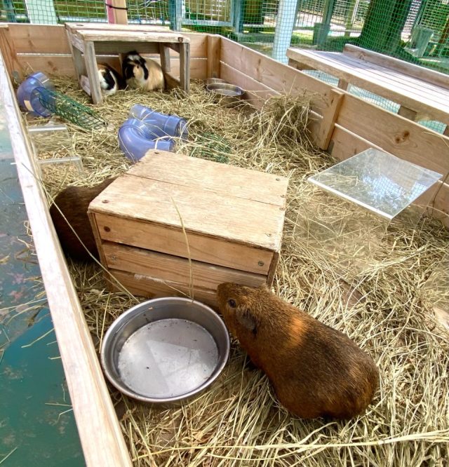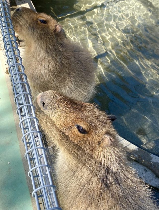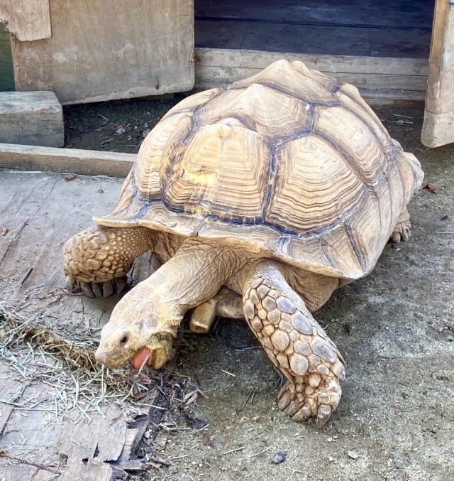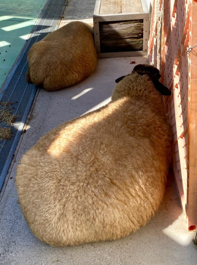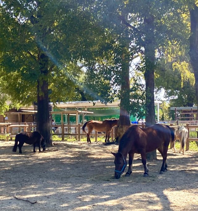 木漏れ日の中、太陽の光を浴びる動物たち。馬、ロバ、ヤギ、羊、カピバラ、亀・・・のんびりくつろぐ姿を見ると、うれしくなってくる。豊橋市の郊外にあるので、とにかく緑が多い。スペースも広々。