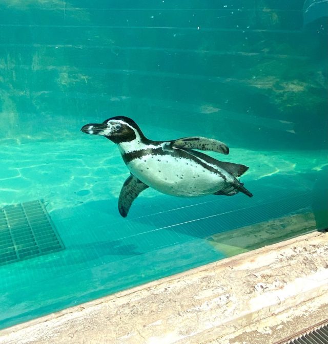 父がぽつり。誰だって、家族やパートナー、仲間と一緒の方がいいに決まっている。早く仲間ができるといいなぁ。さらに、ペンギンや白くまたちの水槽コーナーへ。軽やかに泳ぐ姿がかっこいい〜。