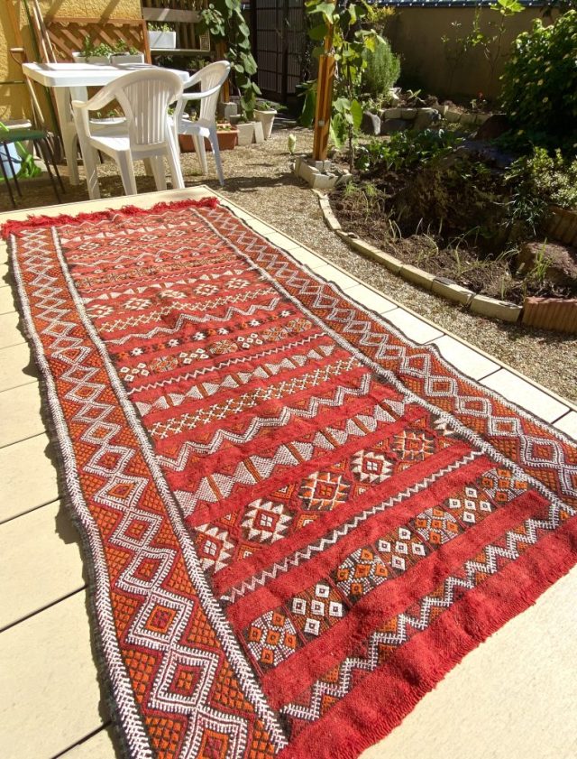 太陽さんさん〜。ちなみにこの写真の絨毯、モロッコ旅行した時に、フェズで買ってきたもの。30分以上かけて値段交渉する私に、呆れたベラが