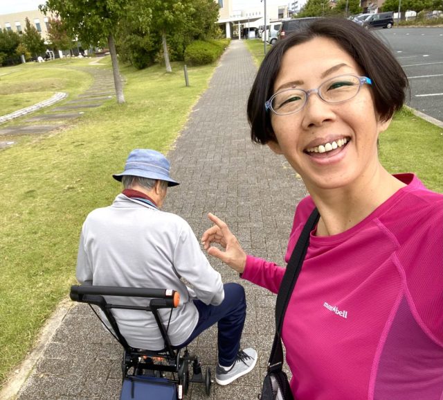 楽しい〜。快適。これなら補助道具として気楽に使えそう。腰痛対策には「歩いて筋肉をつける(筋肉を落とさない)」のがとても重要であることを伝えると、父がいきなり言い放つ。