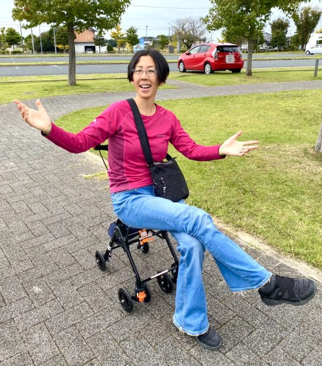 この機を逃してなるものか〜。20分でお買い上げ。さっそく近くの公園へ。どきどきしながら試運転。「痛くて歩かない」より「道具を使って歩ける」方がずっといいじゃーん。