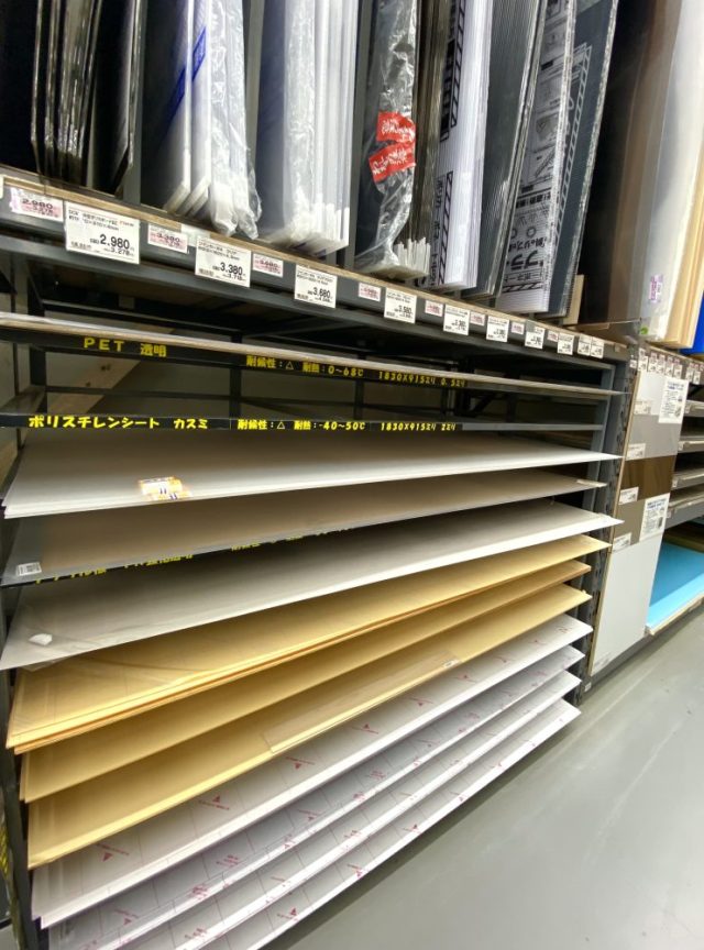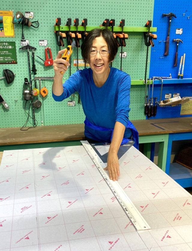 DIY好きが集まる場所(笑)。おしゃべりがはずむ〜。さくさくっと30分で作業を終え、カットしたアクリル板を車へ運び込む。傷をつけないよう大切に。