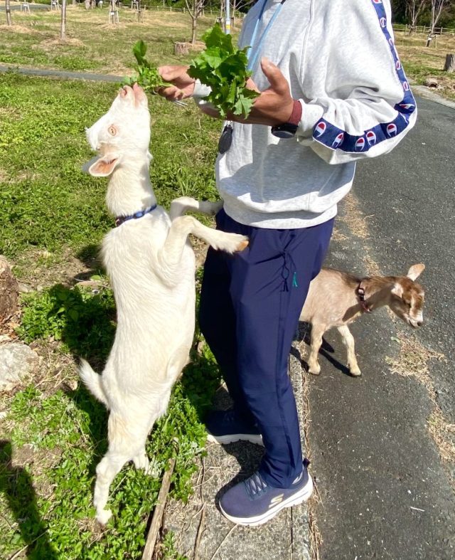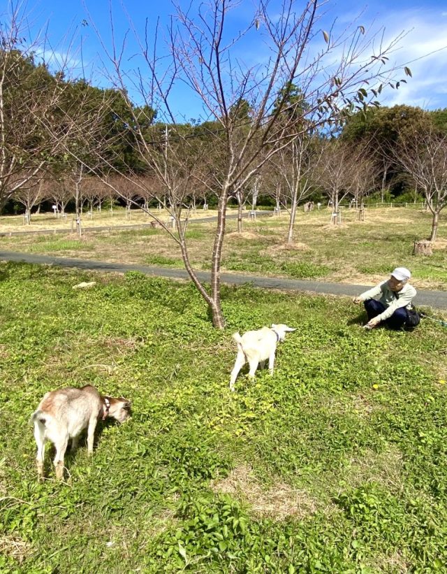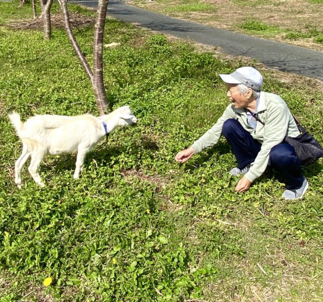 足腰の痛みもヤギのためなら、だったのに。がっくりして、車に戻ろうとしたその時、散歩中の女性に父が声をかけた。