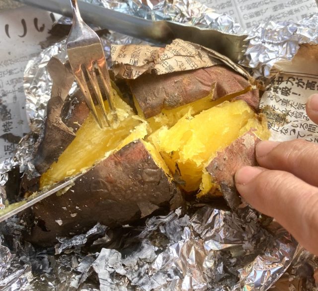 「さつまいも、ホクホク〜」「甘いねぇ」