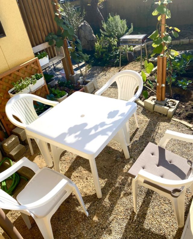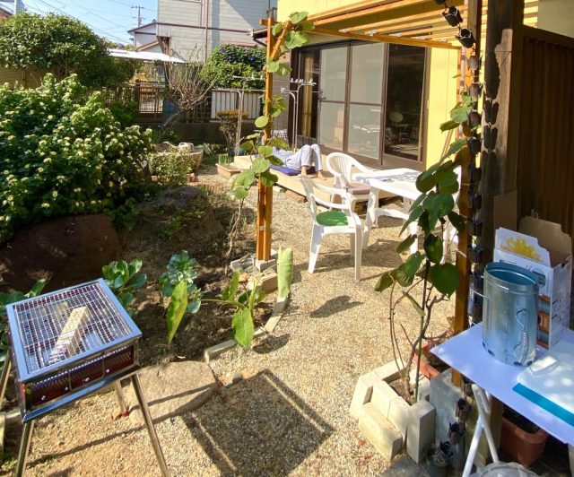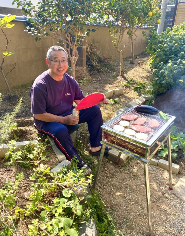 焼き加減を見たり、ひっくり返したり、なかなかのんびり座っていられない。でも、炭火焼きはうまいのう〜。庭の開放感が最高。これぞガーデンバーベキュー。
