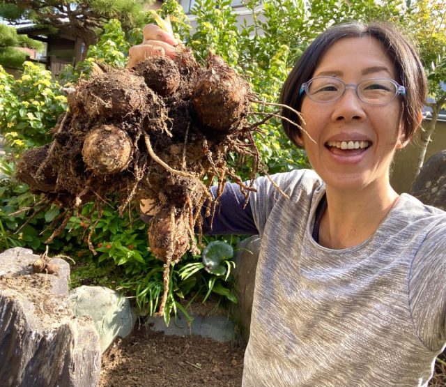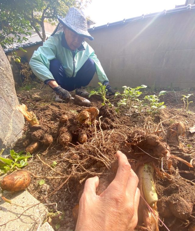 父の歓喜の声が、庭に響き渡る。里芋というのは、地上に伸びた葉はふさふさでも掘ってみたら「えっ、これだけ?」ということがあるのだ。それがまぁ、予想をはるかに越える大収穫。